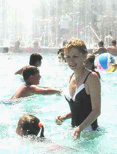 Kunětické hoře ... Chrudimská plovárna otevřena ! (2.6) Sjely starostovi na skluzavce plavky nebo ne? Nablýskaná chrudimská plovárna byla dnes (pátek 2. června 2000) otevřena, za